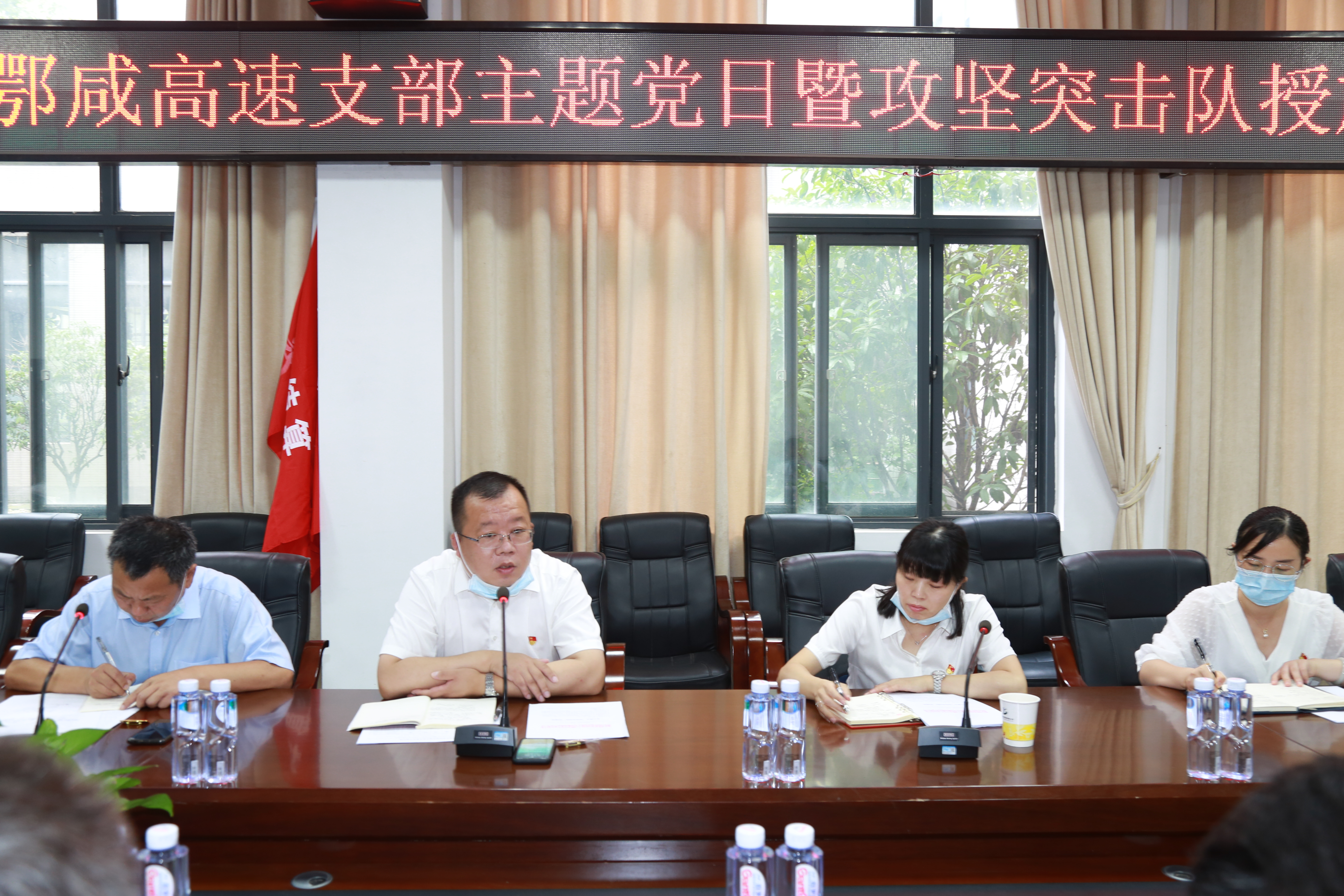 7月2日上午,湖北路橋鄂咸項目臨時黨支部組織開展慶“七一”主題黨日活動暨攻堅突擊隊授旗儀式,隆重慶祝建黨99周年,動員項目全體黨員干部進一步凝心聚力、銳意進取、積極投身到鄂咸項目建設之中。項目臨時黨支部32名黨員在主會場參加,各攻堅突擊隊非黨員隊員通過視頻形式參加會議。