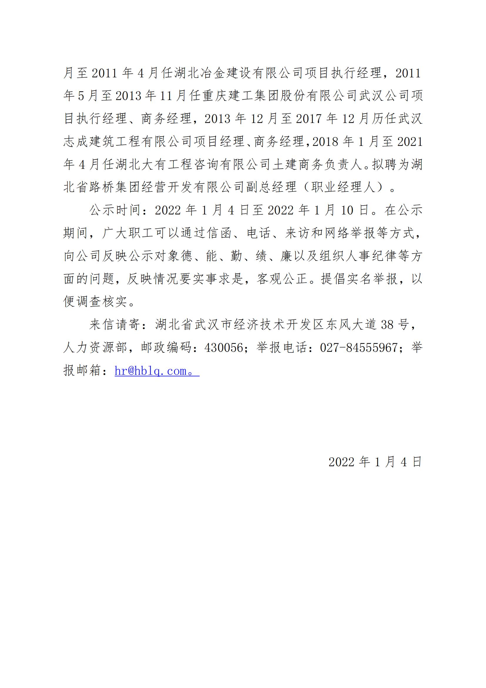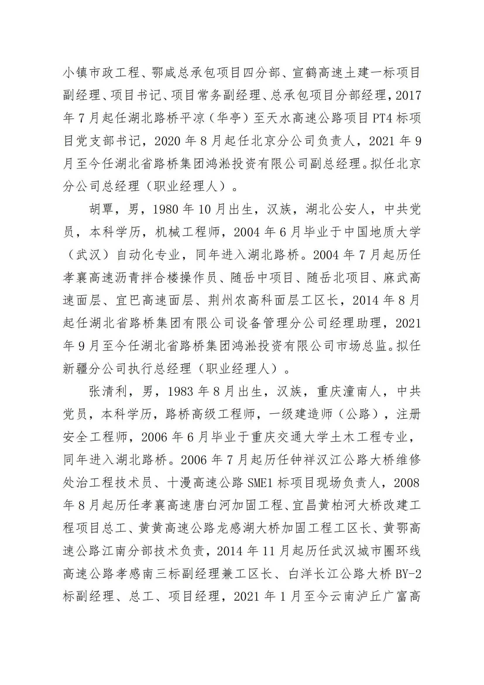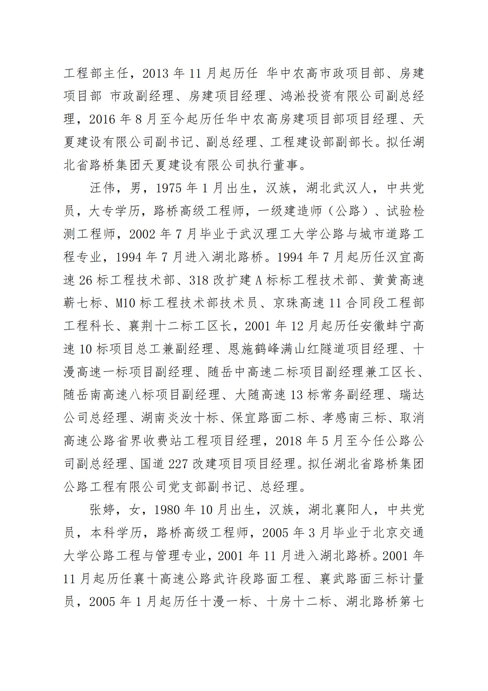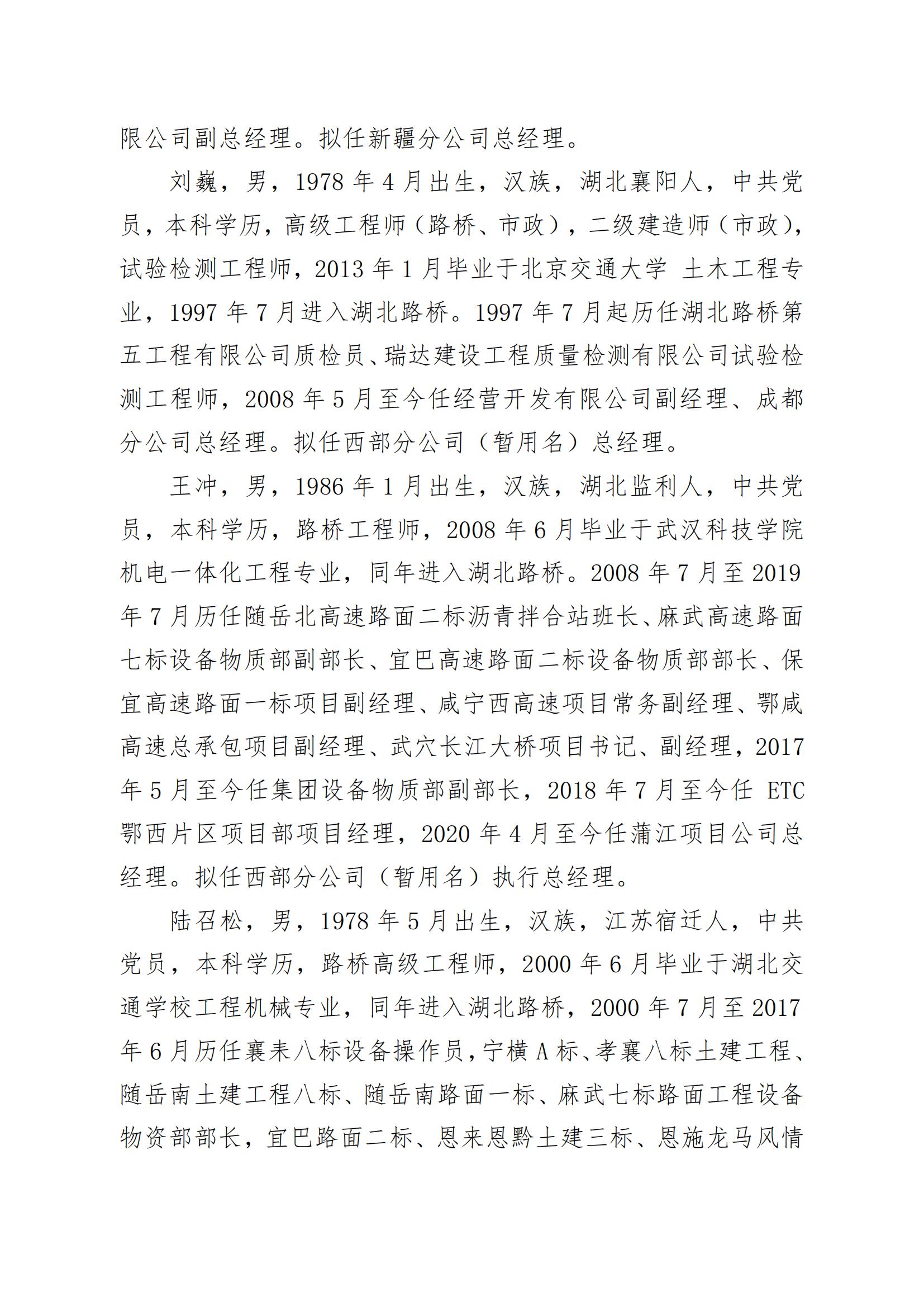 湖北省路橋集團(tuán)有限公司擬提拔任用中層管理人員任前公示