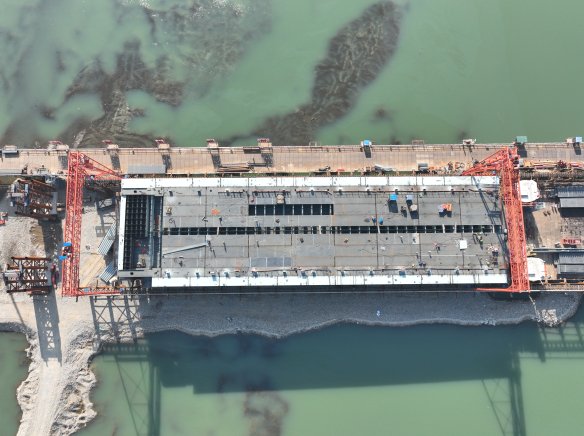 豎曲線長距離鋼箱梁分段多輪次頂推施工技術