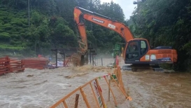 由于特大暴雨肆虐,加上項目四面環山中間一條河的特殊地理條件,導致洪水侵襲項目部。五峰普通公路建設養護總承包01工程項目迅速啟動抗洪救災預案,立即組織人員進行搶險,項目部全體管理人員及工程隊施工人員共計100名投入到搶險救災中,迅速疏浚項目周邊排水管道。同時,現場還形成監控組、巡視組、交通疏導組,在搶險的同時也在全力保護人員安全,做到不漏一人,不漏一械。