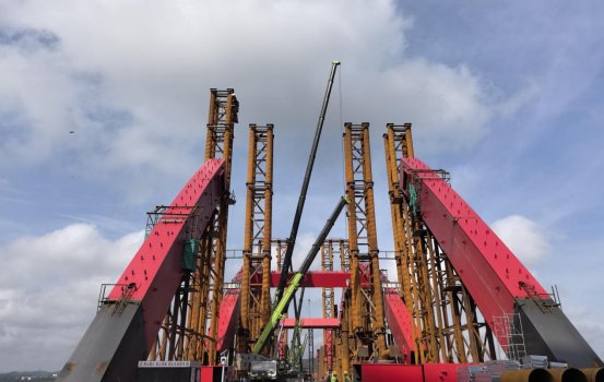 目前,水都二橋工程全橋下部結(jié)構(gòu)、引橋上部混凝土主體結(jié)構(gòu)和主橋主梁鋼結(jié)構(gòu)全部完成,正在進(jìn)行鋼拱肋拼裝、引橋附屬設(shè)施工作,項(xiàng)目計(jì)劃五月中旬前完成第三跨鋼拱肋提升工作,七月份左右完成全橋鋼拱肋安裝提升、主橋UHPC施工、附屬設(shè)施等工作。水都二橋建成后,將與水都大橋配合協(xié)調(diào)使用,對(duì)改善丹江口市交通環(huán)境,具有非常重要的意義。湖北路橋?qū)⒓哟筚Y源投入,合理組織、精心安排,爭(zhēng)取水都二橋工程早日建成通車(chē)。